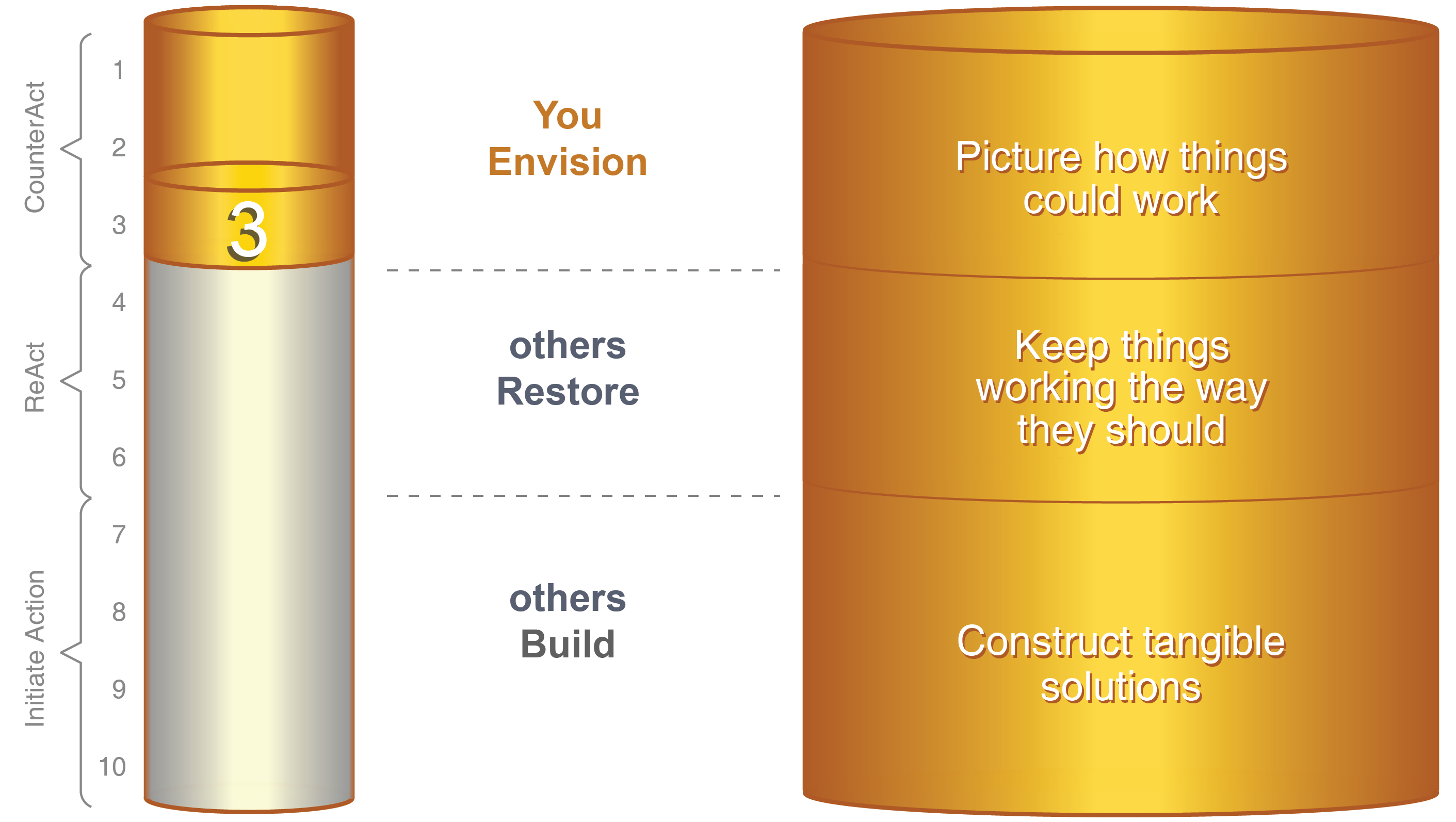 Don’t let anyone stereotype you as contributing or “being” just one of the Action Modes. Your contribution begins with innovating and continues until you envision the solution.