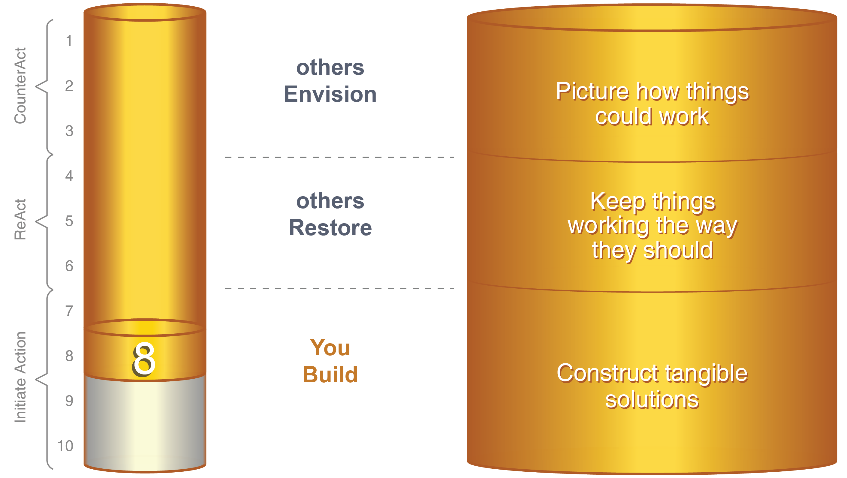 Don’t let anyone stereotype you as contributing or “being” just one of the Action Modes. Your contribution begins with building and continues until you adapt the solution.